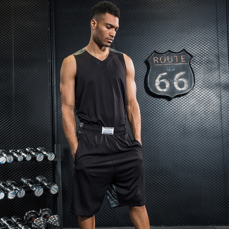 Discount Basketball jersey Set Man Tops + shorts Fitness Breathable Quick Dry Sport Shirts Suit Training Sportswear Online